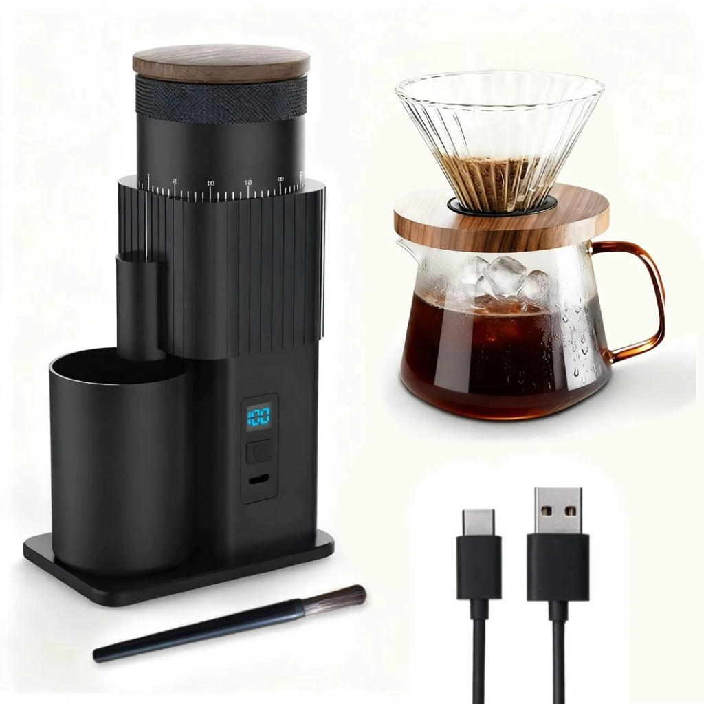 USB-Rechargeable Burr Coffee Grinder – Portable Design with Adjustable Settings and Easy Maintenance for Coffee Lovers