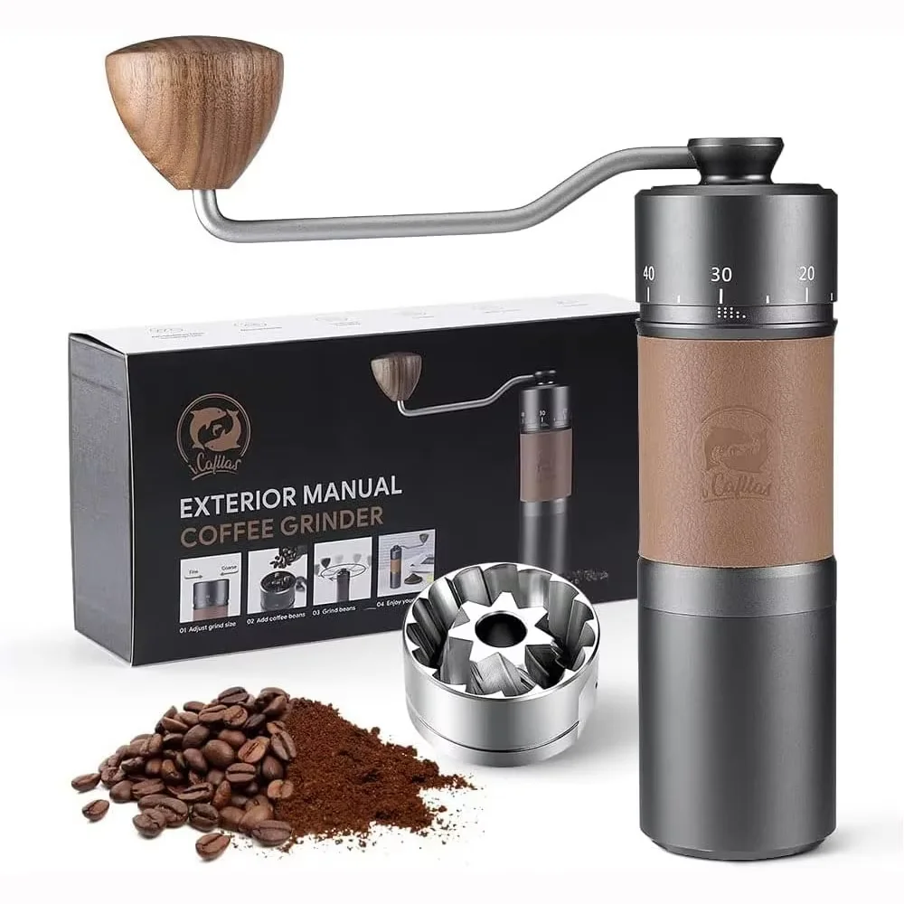 icafilas Manual Coffee Grinder 420 stainless steel 7-core burr coffee bean grinder adjustable grinding thickness anti slip pad
