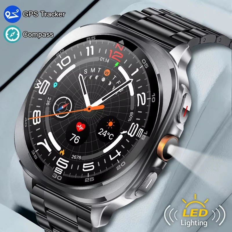 LAXASFIT New Men’s Outdoor Sports Smart Watch HD Bluetooth Talk LED Flashlight Heart Rate Monitor Smart Watch