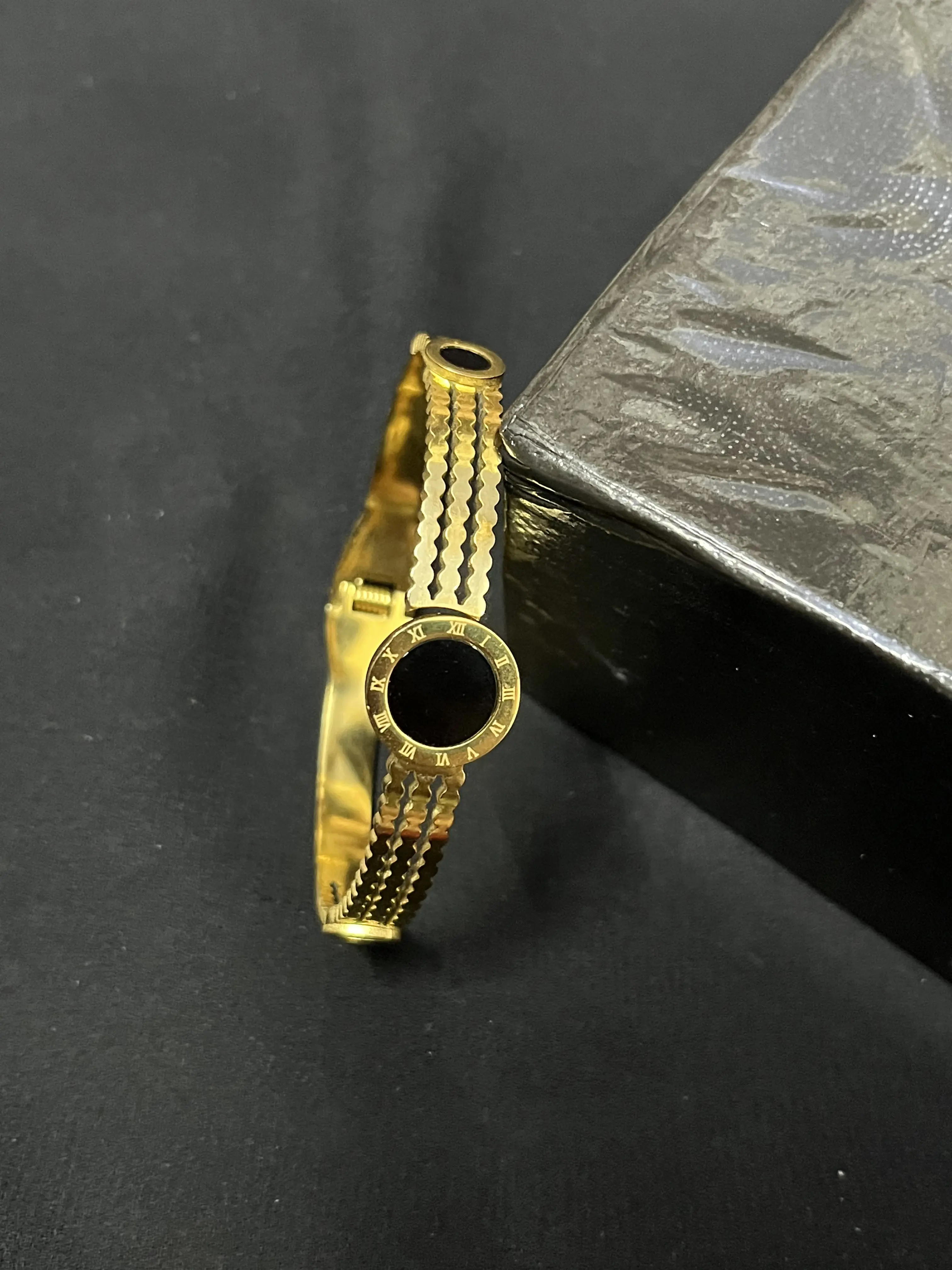 Fashion Stainless Steel Watch-Shaped Cuff Bracelet – Gold Metal Bangle for Women & Girls Elegant Jewelry Gift