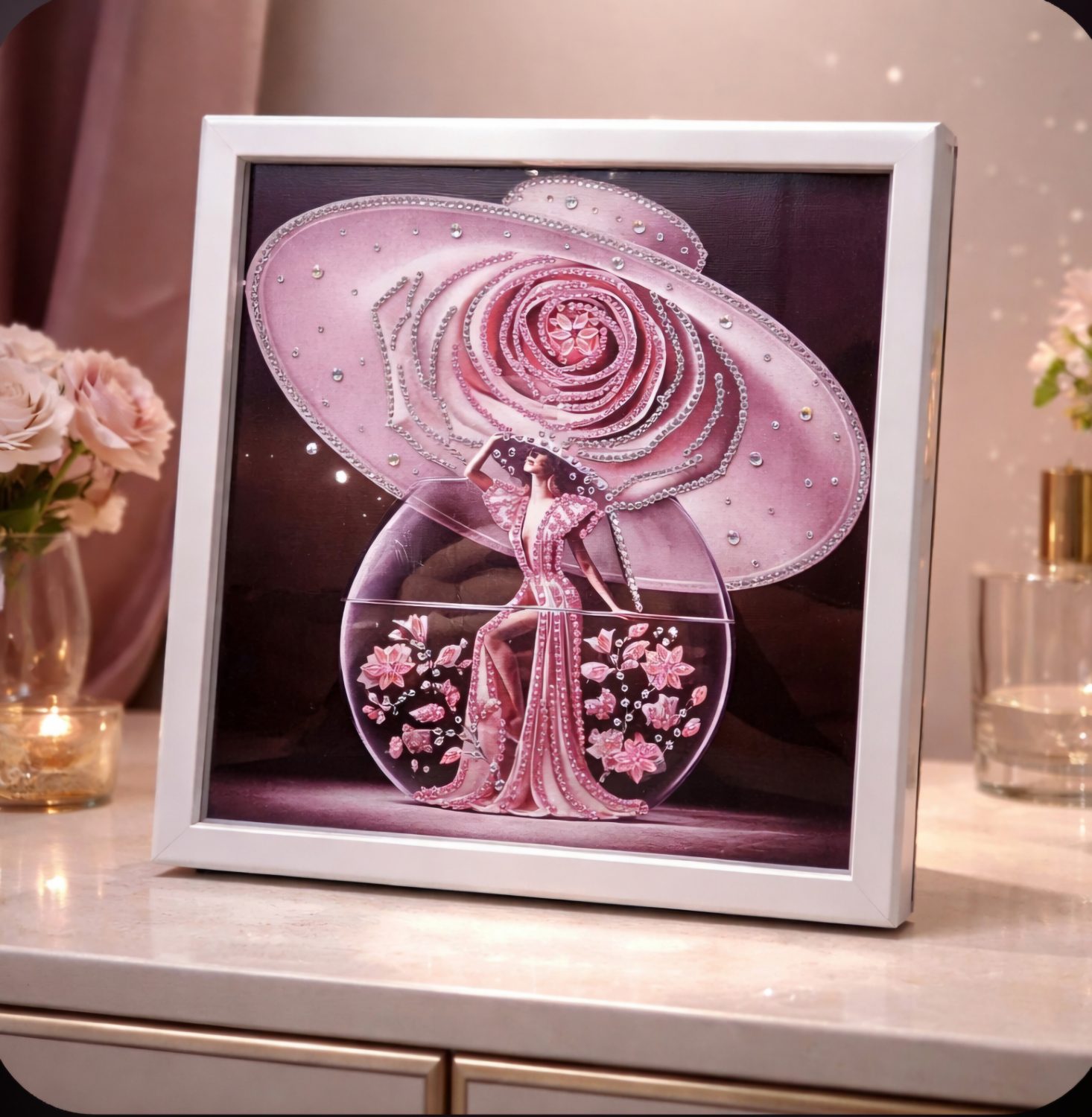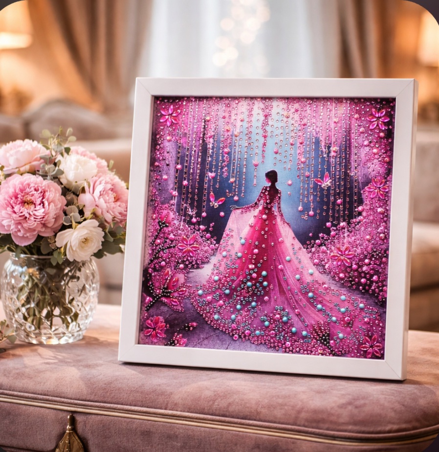 Diamond painting pink lady
