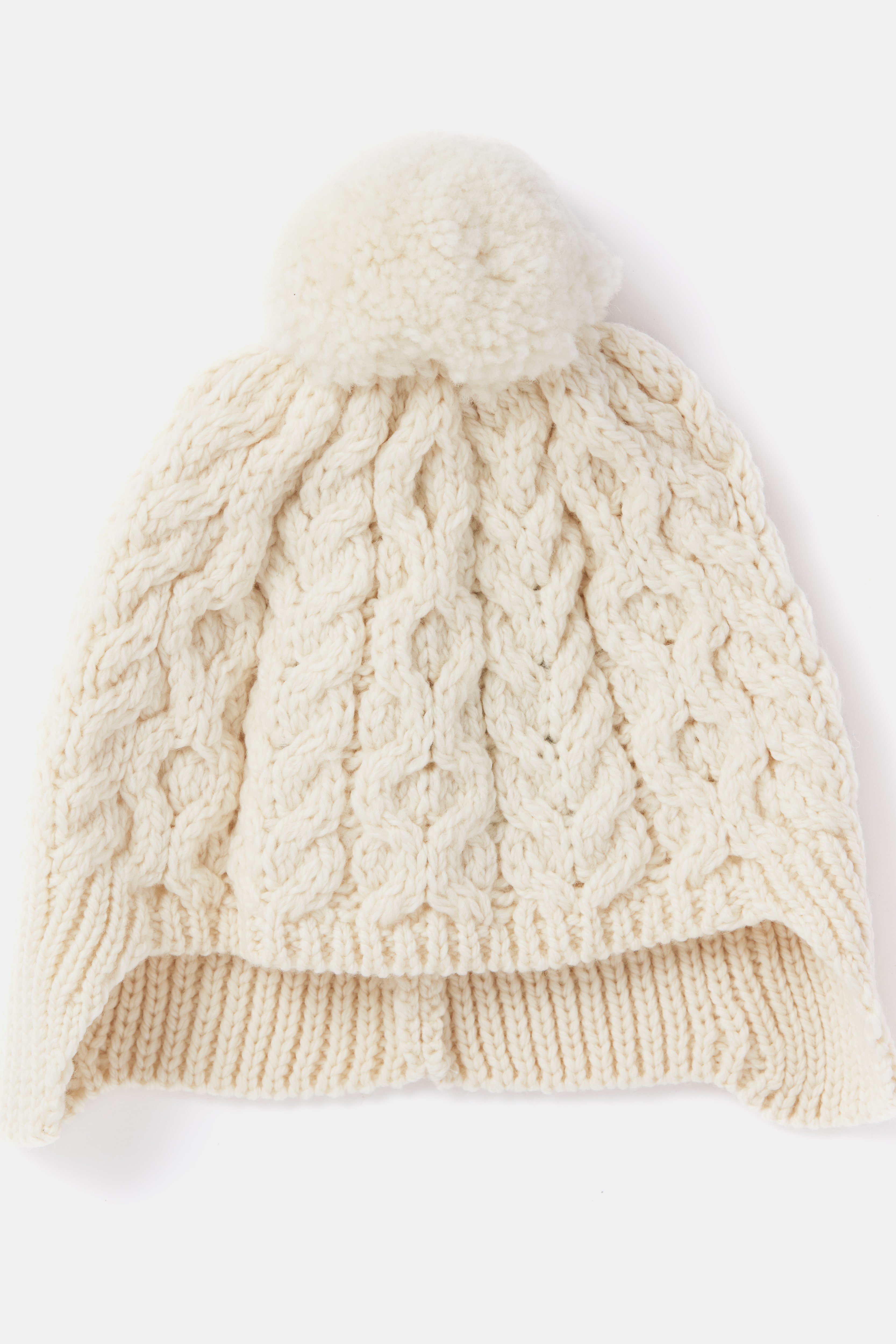 Hand Knit Aran Hat with Woollen Pom Pom