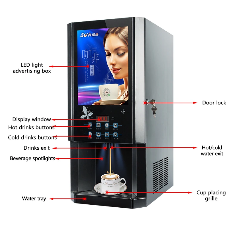 30SCW-8 Instant Coffee Machine for Commercial Use 3 Hot Cold Drinks and Hot Cold Water Coffee Dispenser