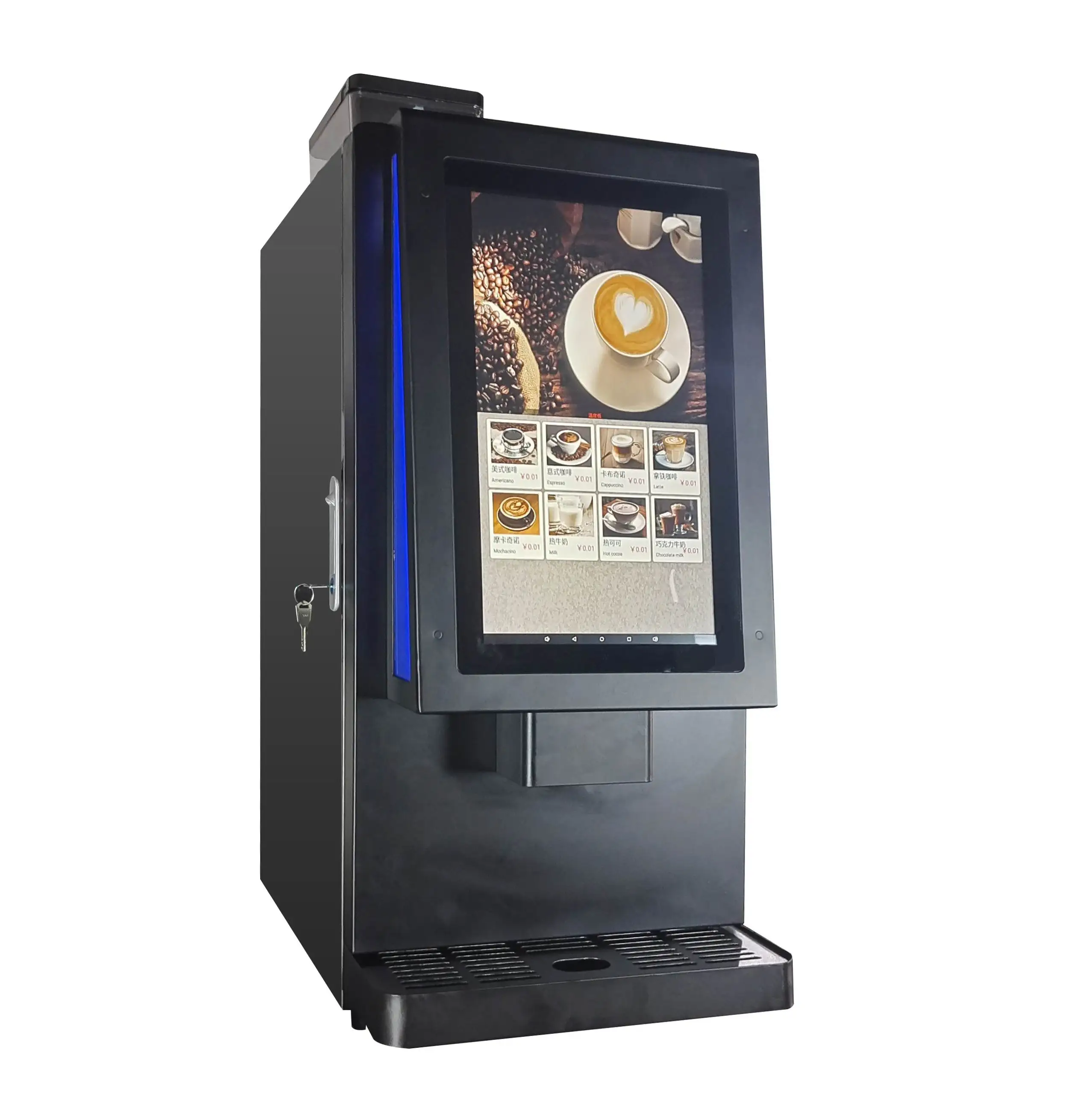 40S Classical 4 Flavours Hot Instant Coffee Machine Commercial LED Light Box Advertising Milk Tea Coffee Machine
