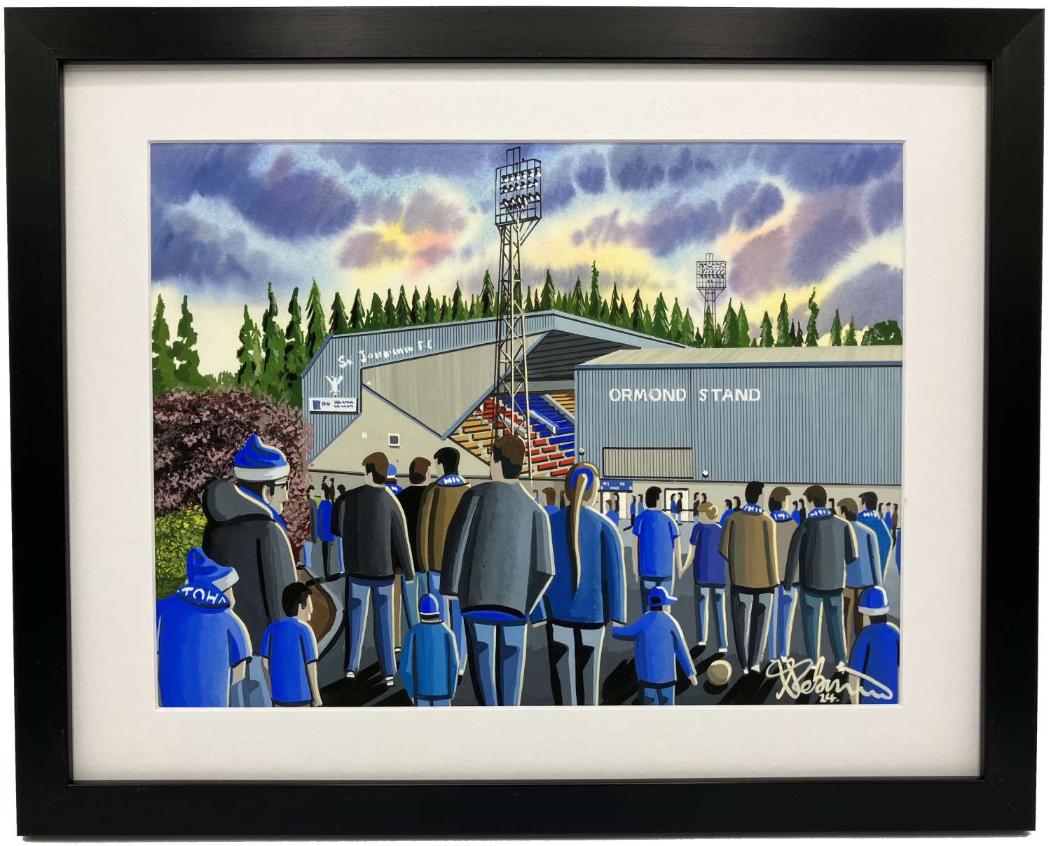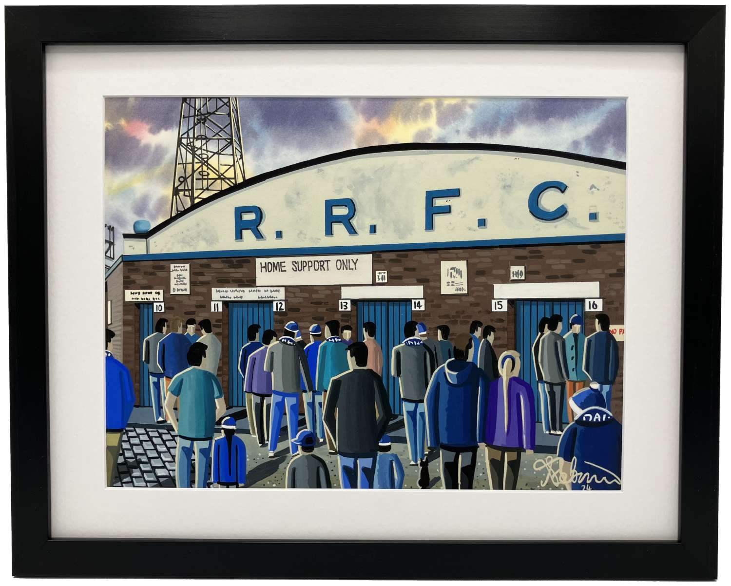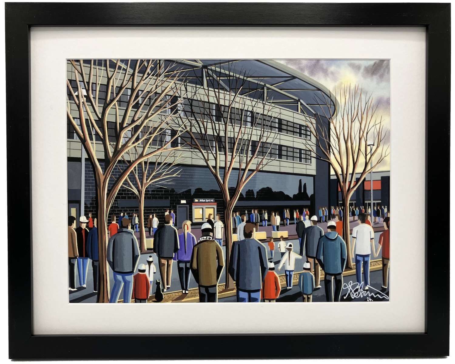 Titled ‘Converging Canaries’ this is a unique Norwich City F.C print direct from myself the artist. My artworks are a celebration of the match day experience and of stadium architecture. Ideal way to enhance and add personality to any home or office. A gift that any football supporter would truly appreciate. Fine Art Giclee Print Details. *Football Club; Norwich City F.C *Artist; Andrew Robinson. *Picture Title: Converging Canaries *Style; Illustrative Art. *Originality; Open Edition Print. *Printed Image Size; 291mm x 220mm (App A4). *Print Medium; Epson Ultrachrome HDX Inks. *Print Surface; Permajet Alpha Rag 310gsm. *Frame; Contemporary Black Frame. *Window Mount; White. *Outer Frame Dimensions: 390mm x 310mm (Approx 15¼ x 12¼ inches). *Internal Image Dimensions: 285mm x 200mm (Approx 11¼ inches x 8 inches). *Acrylic Picture Frame Glass For Safety.The framed print comes with a ‘Certificate of Authenticity’ which documents the details of the original painting and the art print. The Certificate of Authenticity is affirmed with a signature from both myself (the artist) and the printer.All andrewrobinsonart giclee prints are professionally printed, made using state of the art printing equipment with only the highest quality inks and print media. This ensures an honest reproduction that can last a lifetime. All prints are framed in a contemporary black frame. Moulding dimensions can vary fractionally depending on the supplier.All products are dispatched in plain cardboard boxes so not to spoil any gift surprises.Have any questions? I’m always ready to help! Send me an email.Copyright. Please note that the purchase of this framed print does not entitle the purchaser/owner to the copyrights of this image. The copyright always remains with the artist Andrew Robinson.